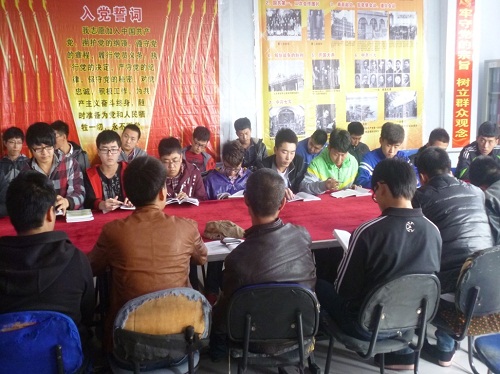 二〇一三年十月十四日,yl7703永利集团党课讨论,我系入党积极份子们聚在党员活动室,大家讨论党的章程党的精神,大家讨论的十分热烈,都希望早一天成为一名真正的中国共产党员。