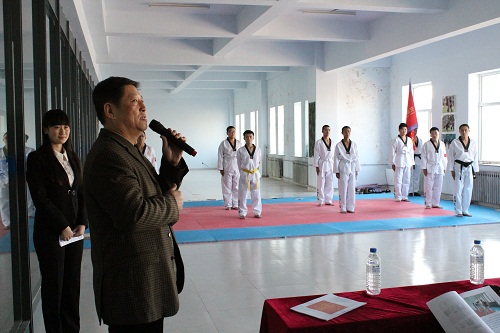 2014年11月8日,伴随着充满激情的音乐声和热烈的现场气氛,yl7703永利集团流焰跆拳道协会在yl7703永利集团跆拳道训练室举行了成立一周年纪念仪式,yl7703永利集团各位领导和yl7703永利集团各年级的同学们都热情的来到现场指导、参观,并且由yl7703永利集团党总支书记周勇书记亲自授予了流焰跆拳道集训队队旗。短短的授旗仪式,成为了yl7703永利集团冬日里耀眼的一颗星。 仪式期间,流焰跆拳道协会的队员们进行了国旗下的宣誓,也为同学们进行了跆拳道品势表演、擒拿格斗表演和特技击破表演,表演之后,由yl7703永利集团党总支书记周勇书记发表重要演讲,并且为队员们授予了集训队队旗,使队员们的训练意志得到了很大的鼓舞,最后队员们与yl7703永利集团的领导和老师们合影留念,仪式圆满的落下了帷幕。 yl7703永利集团流焰跆拳道协会始建于2013年11月8日,组建一年来,队员们克服各种困难,始终坚持训练,练就了突出的毅力和自信,在身体素质、意志品质等方面都有了很大的提高,协会也一直得到了学院的大力支持,本次授旗仪式以后,流焰跆拳道协会将怀揣着充分的信心和毅力继续走下去,刻苦训练、克服困难,为学院争光添彩!