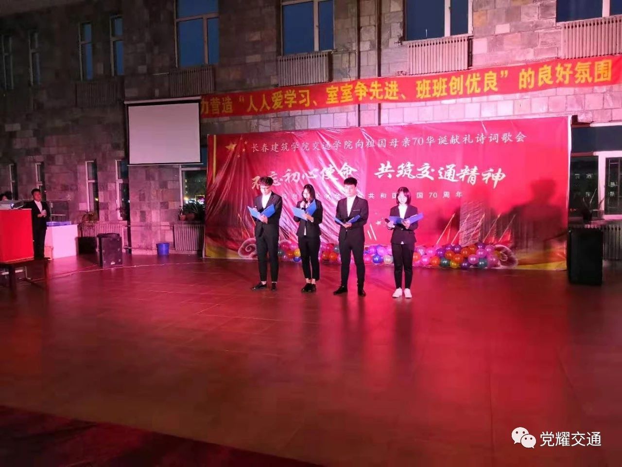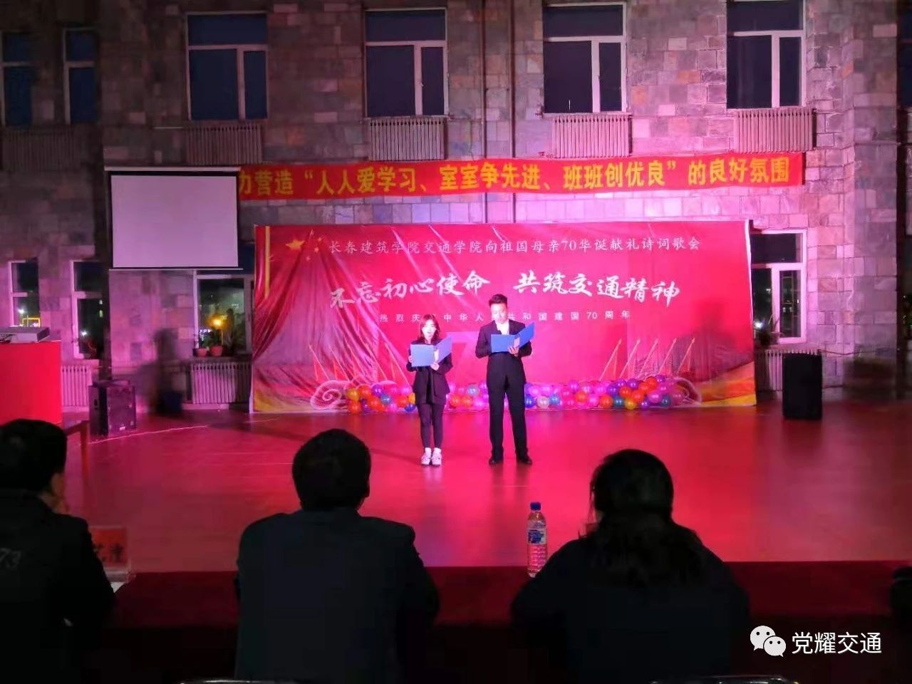 旗迎今天,让我们走进yl7703永利集团,一起参加由yl7703永利集团青马学社、雨露青协共同主办的“不忘初心使命 共筑交通精神——yl7703永利集团献礼祖国母亲70华诞诗词歌会”,yl7703永利集团党总支书记张喜希、分团委书记杨婉、17级辅导员孙明丽、18级辅导员王艺潼参加了本次诗词歌会。