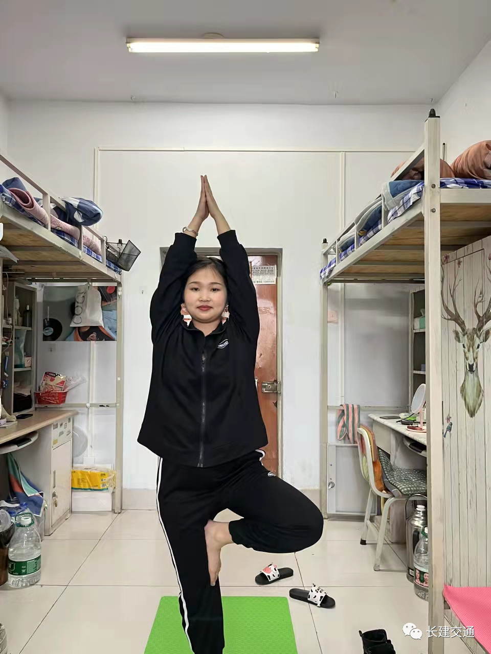 活动中,同学们就地取材,充分利用不同的寝室设施,进行有氧瑜伽、俯卧撑、跳绳等体育活动。有限的场所,青春活力无限,同学们将各种体育锻炼开展得如火如荼,并乐在其中。