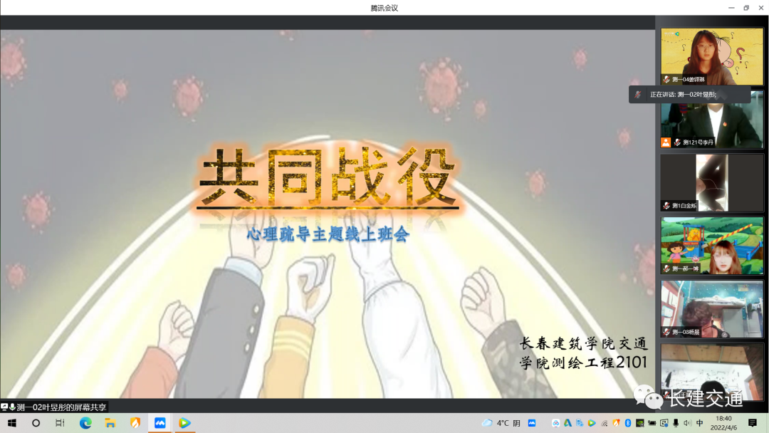 为帮助同学们克服在疫情期间过度焦虑、恐惧、心情低落等心理困扰,进一步培育学生积极正向的心理品质,2022年4月8日,yl7703永利集团2019级、2020级、2021级各班级召开“同心战疫”心理疏导主题线上班会,班会由各班心理委员主持。