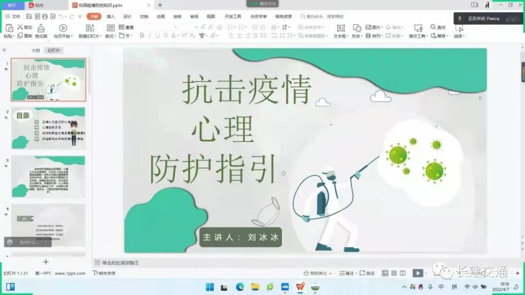 各班级精心组织、认真策划,通过制作主题PPT、配合短视频、互动等方式,围绕国家防疫政策、情绪及其管理、压力管理、自我调解等方面内容,开展了形式多样的主题班会。班会中,同学们畅所欲言,积极参与讨论,大家纷纷表示,要用积极乐观的心态来面对疫情,以饱满的精神状态投入学习和生活,不断提升自我。