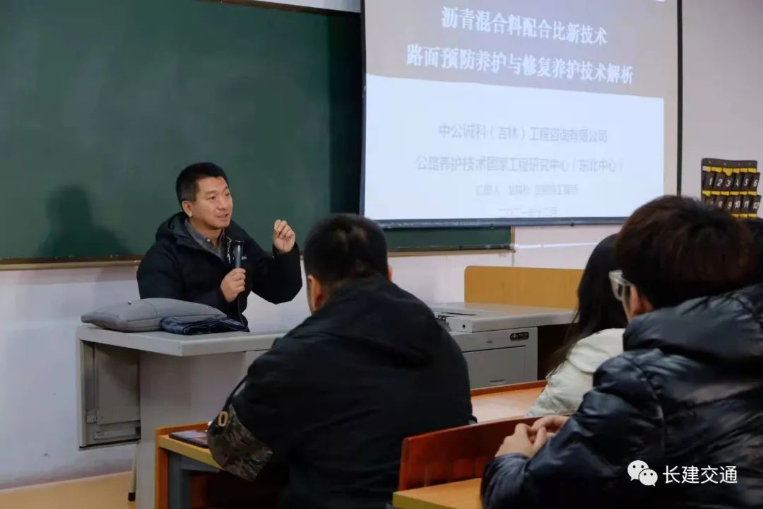 2021年12月15日10:00,yl7703永利集团邀请中公诚科(吉林)工程检测有限公司正高级工程师赵鹤松,在五楼报告厅举办了“沥青混合料配合比新技术,路面预防养护与修复养护技术解析”学术讲座,yl7703永利集团19级学生参加了本次讲座。