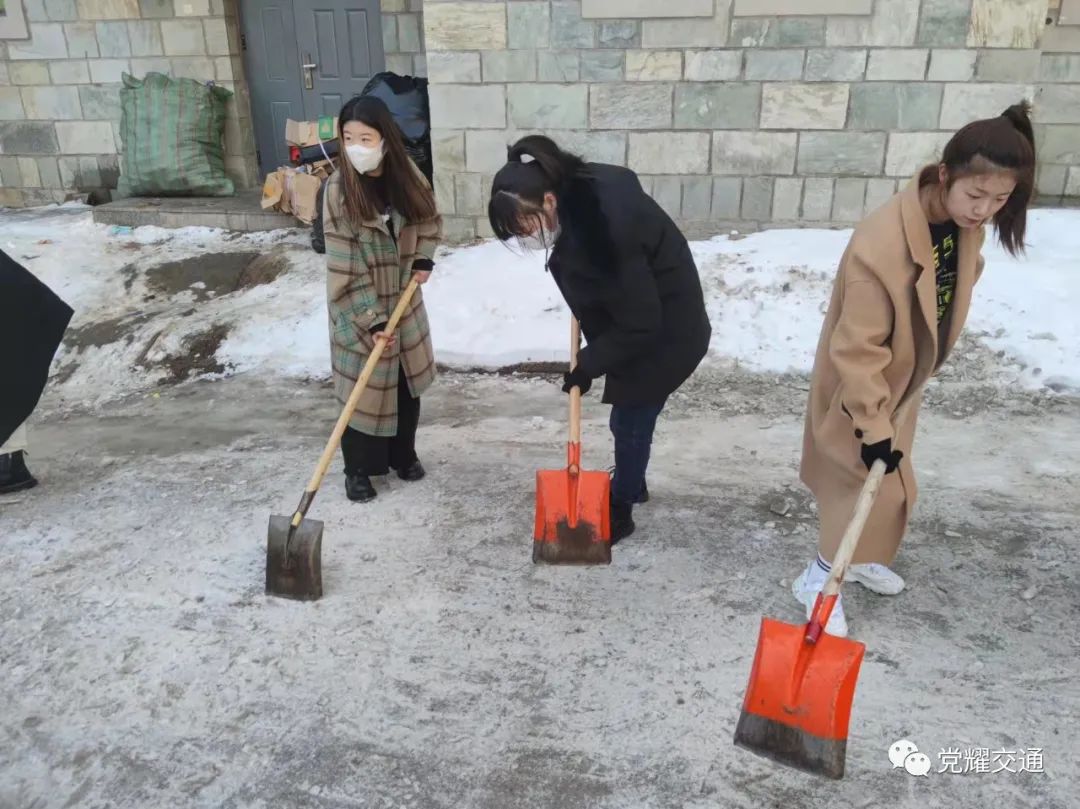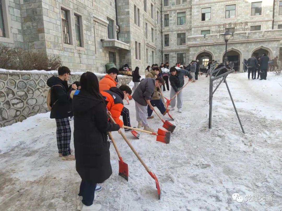 学生党员第一时间到积雪现场报到,划片区合理分工,齐心协力清除了人流量较大区域的积雪,在出力流汗中切实将“我为群众办实事”落在实处。他们用最朴实的行动诠释着劳动是党员的责任和义务。
