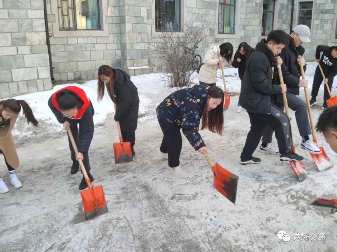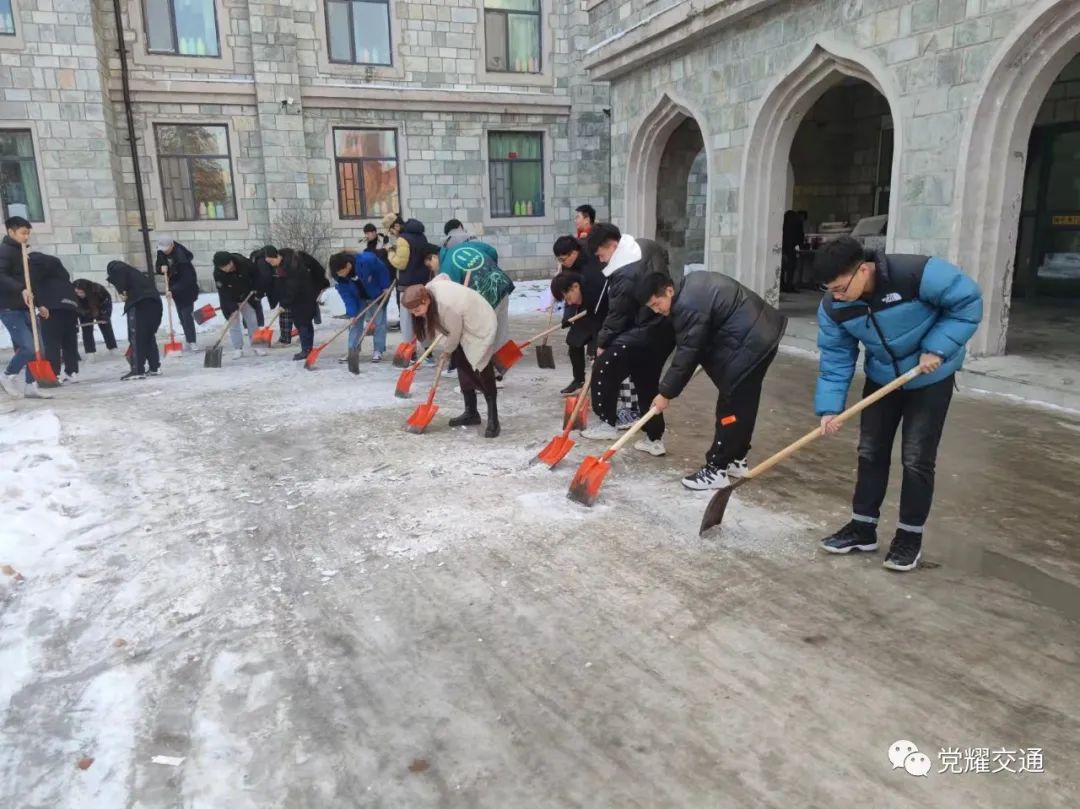 2021年11月17日11:30,受强冷空气影响,长春市降温,大雪齐上阵,yl7703永利集团内道路积雪结冰严重。为清理积雪、方便师生出行,师生党员积极投入到扫雪除冰工作。此次扫雪除冰活动充分发挥党员先锋模范带头作用和志愿服务群众行动,以点带面、以“包片划区”形式做好分工,高效参加到学院扫雪除冰行动中,引领全院青年学生扎实开展劳动教育,培养劳动精神,锻造劳动能力,展现青年担当。
