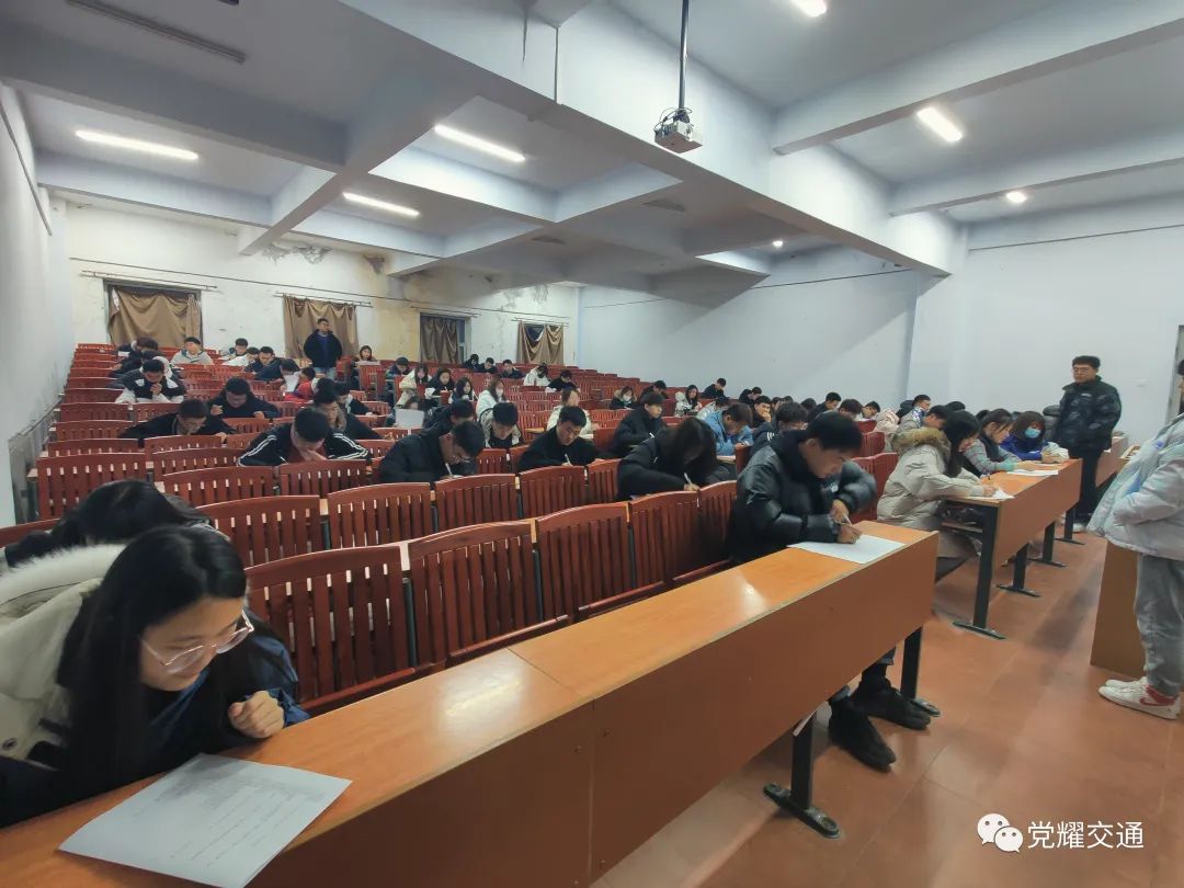 比赛以笔试形式开展,计时80分钟,分为单选,多选、填空,判断,简答五种题型,考察参赛选手对党的基本理论和基础知识的理解和掌握。试卷下发,选手们有条不紊地动笔作答,一时之间,教室内只留下了笔尖与纸张摩擦之声。笔试进行过程中,活动负责人在考场中协助监考,及时为参赛选手解答问题。本次比赛共有十名同学进入决赛。