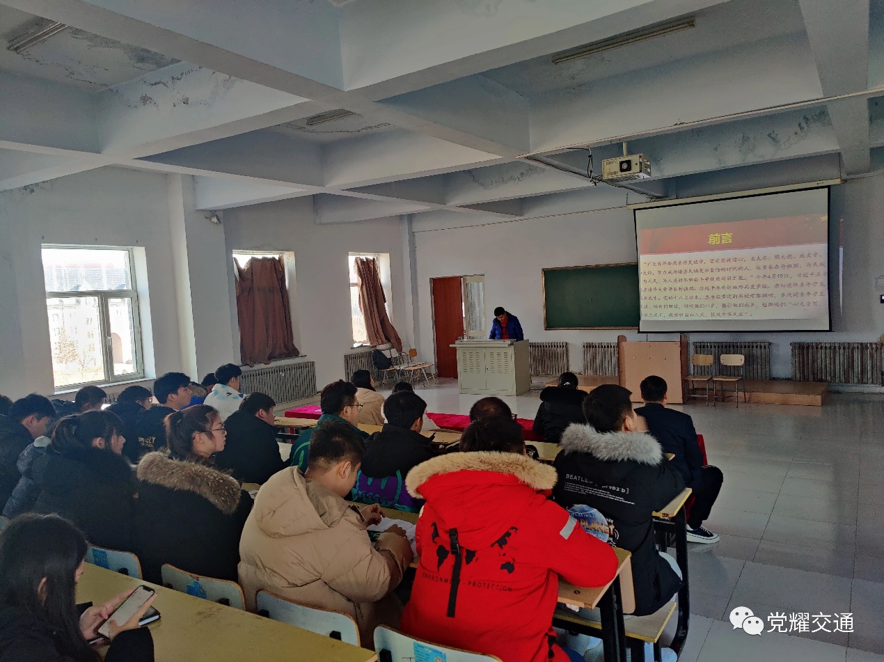 2021年12月15日中午11:30,yl7703永利集团在教学楼307教室组织开展了关于《学习总书记这样和大学生谈心》内容的学习。本次学习由学生党员李寅赫主讲,yl7703永利集团党总支副书记马琰、团委书记杨婉、学生支部书记王帅、大四辅导员李赛男和全体学生党员参加。