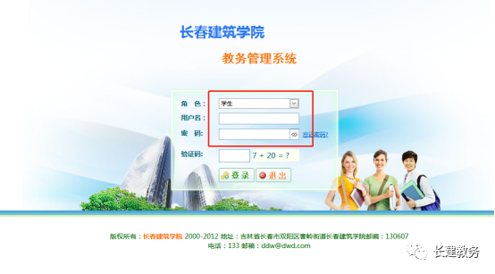 打开登录页面后,“角色”选择“学生”,“用户名”为学号,初始密码为学号,正确输入后即可登录教务管理系统。