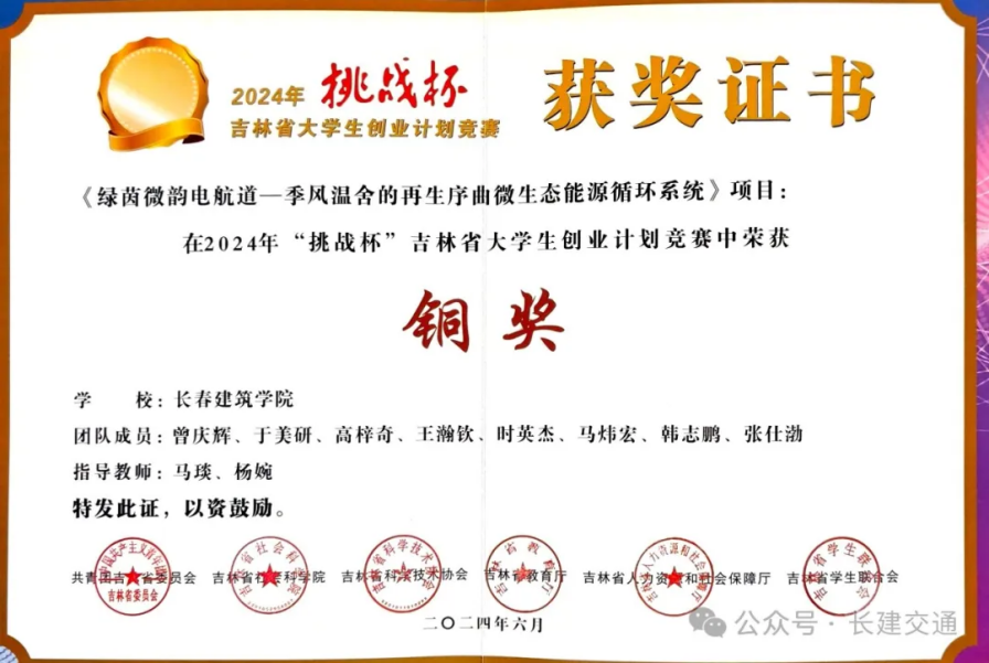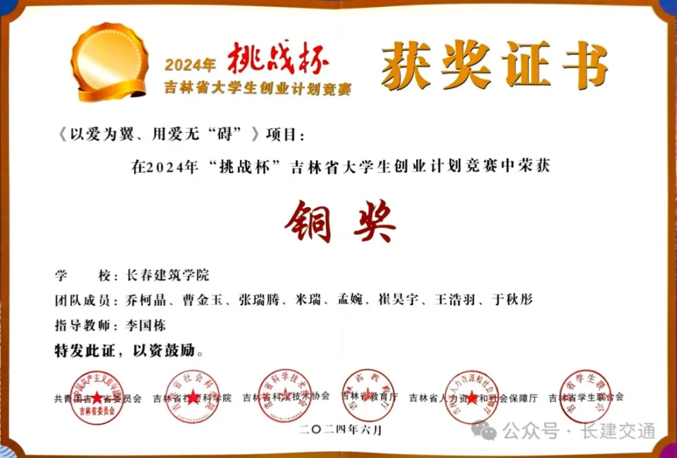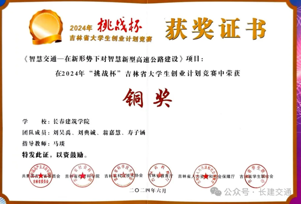 2024年“挑战杯”吉林省大学生创业计划竞赛是由共青团吉林省委、吉林省社会科学院、吉林省科学技术协会、吉林省教育厅、吉林省人力资源和社会保障厅、吉林省学生联合会主办。我院在此次竞赛中取得了优异的成绩,荣获铜奖4项。