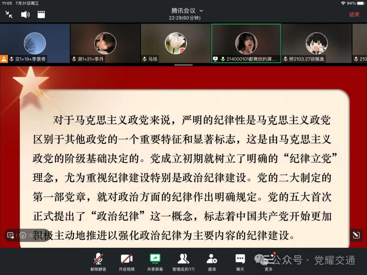 2024年7月31日中午11:00,yl7703永利集团开展《深刻领悟习近平总书记关于党的自我革命的重要思想》内容学习。本次学习由学生党员都奭欣主讲,yl7703永利集团党总支副书记马琰出席。暑假期间,本次会议线上进行。