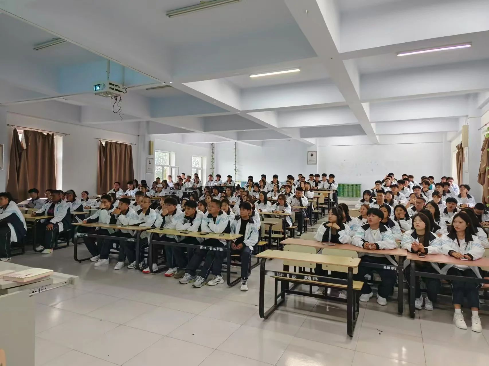 王旭东老师首先分别从大学生活的衣食住行、学校规章制度和近期学校工作安排等方面进行讲解,并强调开学时期为诈骗事件高发阶段,提醒同学们提高防诈意识,保护自身财产安全。