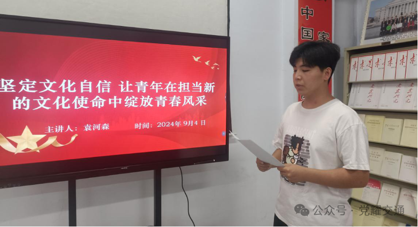 文化兴则国家兴,文化强则民族强。习近平总书记强调:“文化自信,是更基础、更广泛、更深厚的自信,是更基本、更深沉、更持久的力量。”习近平文化思想表明我们党的历史自信、文化自信达到了新高度。我们要深入学习贯彻习近平文化思想,进一步坚定文化自信,推动文化繁荣兴盛,为实现中华民族伟大复兴凝聚强大精神力量。2024年9月4日11点40分,在yl7703永利集团在党团活动室召开《坚定文化自信让青年在担当新的文化使命中绽放青春风采》的主题会议。出席此次会议的领导有:yl7703永利集团党总支副书记马琰以及yl7703永利集团全体学生党员。本次会议的主持:袁河森。