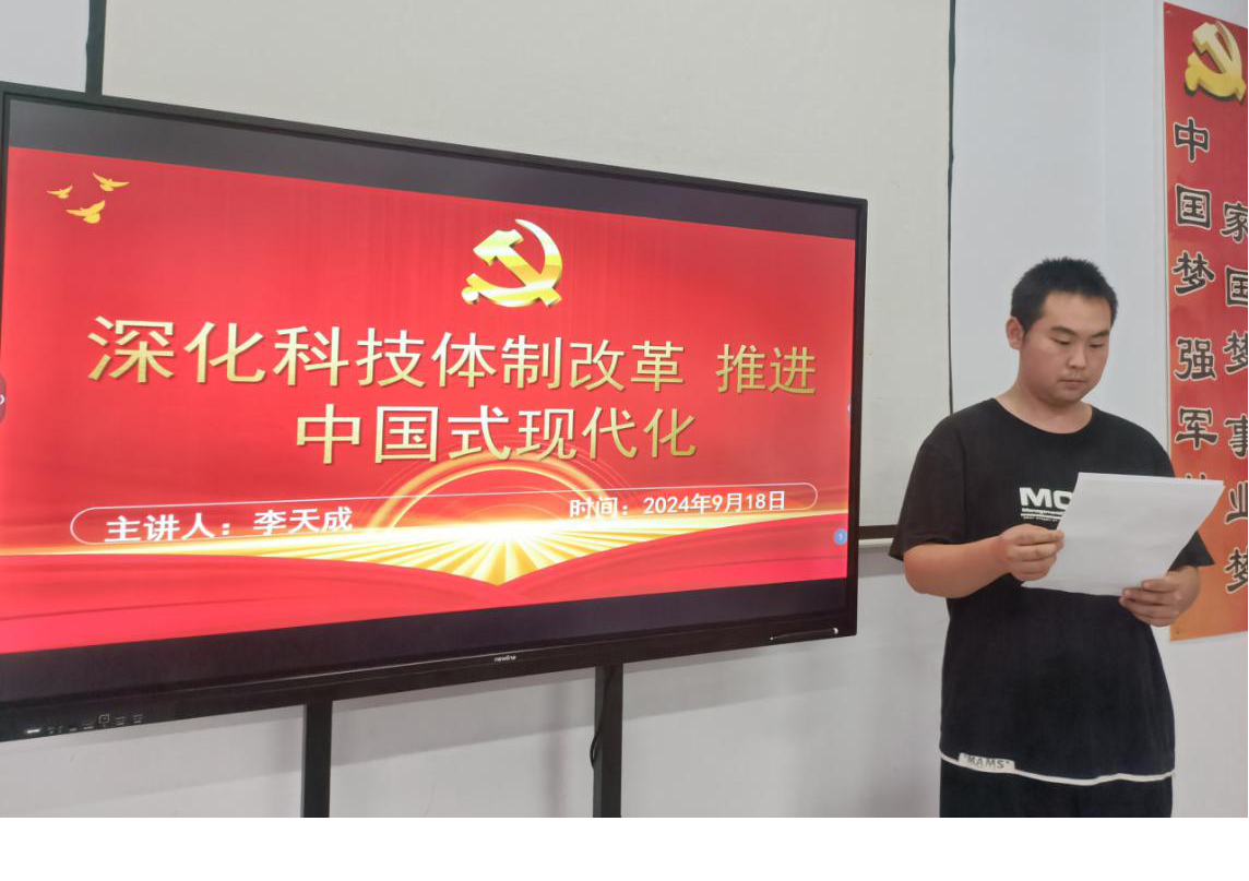 2024年9月18日11点40分,在yl7703永利集团党团活动室召开《深化科技体制改革 推进中国式现代化》的主题会议。出席此次会议的领导有:yl7703永利集团党总支副书记马琰以及yl7703永利集团全体学生党员。本次会议的主持:李天成。