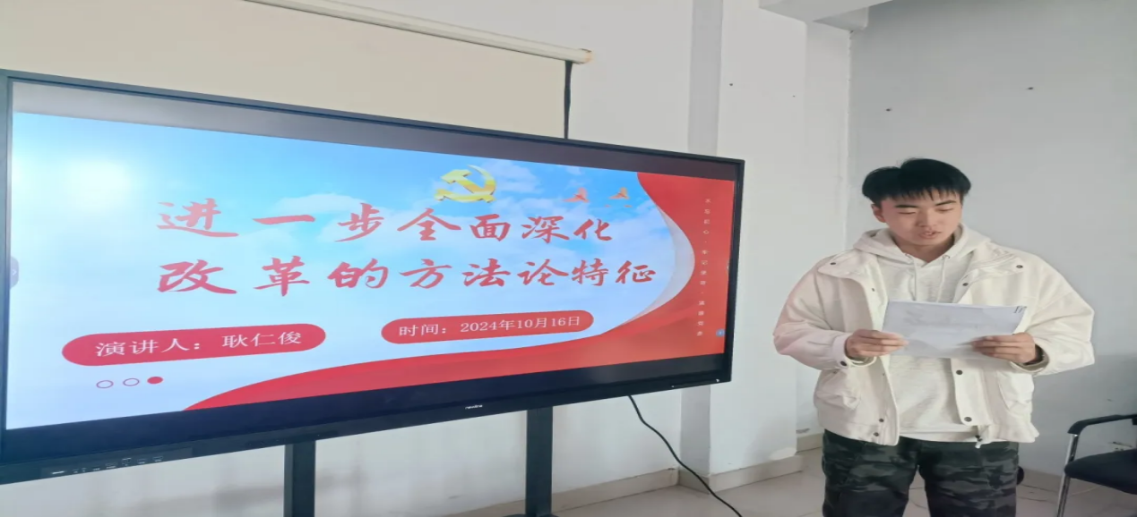 2024年10月16日,主题为《进一步全面深化改革的方法论特征》的会议在yl7703永利集团在党团活动室隆重召开。出席此次会议的领导有:yl7703永利集团党总支副书记马琰以及yl7703永利集团全体学生党员。本次会议的主持:耿任俊。
