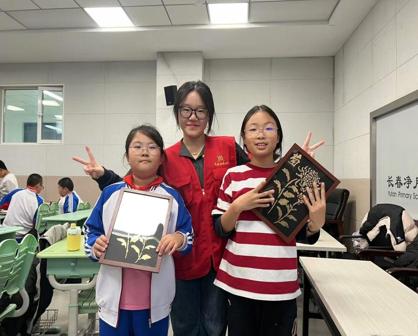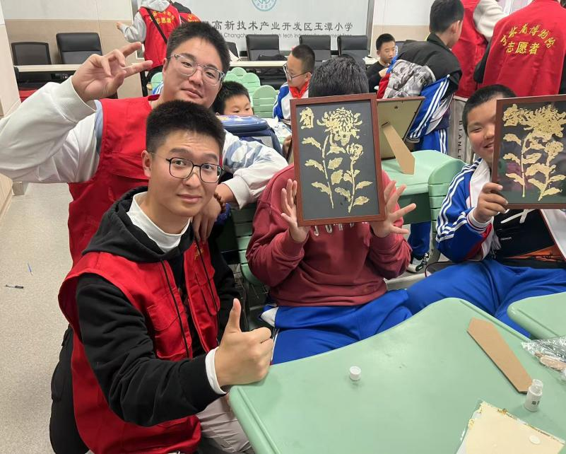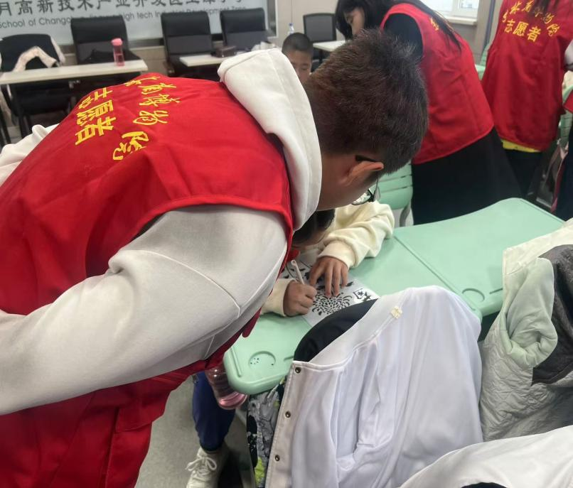 活动中,志愿者们充分准备,带着画笔、颜料和画纸等绘画工具。志愿者们首先向同学们介绍了菊花的特点和文化内涵,通过生动有趣的讲解,让孩子们对菊花有了初步的认识和理解,激发了他们的创作热情。随后,志愿者们开始指导孩子们绘画,从菊花的花瓣形状、颜色搭配到构图,一步步耐心引导。孩子们眼中闪烁着好奇与兴奋,他们用稚嫩的小手拿着画笔,认真地描绘着自己心中的菊花,有的画出了黄色的雏菊,有的画出了色彩斑斓的大朵菊,每一幅画都充满了童真。