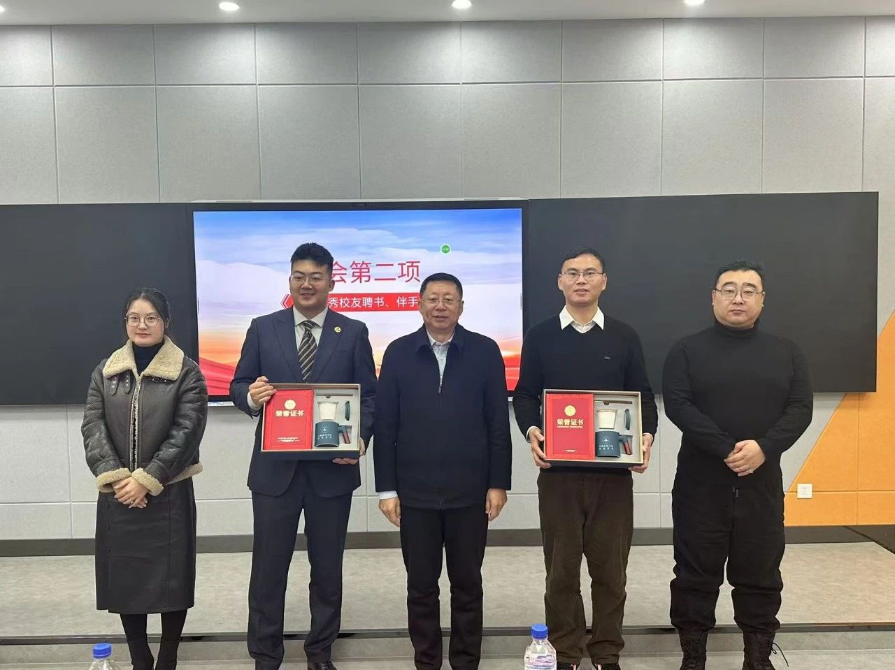 随后,院长陈东丰、团委书记郭梓睿,组织委员李赛男共同为两位校友送上了聘书以及伴手礼,祝愿两位校友的未来一帆风顺,事业一路长虹。