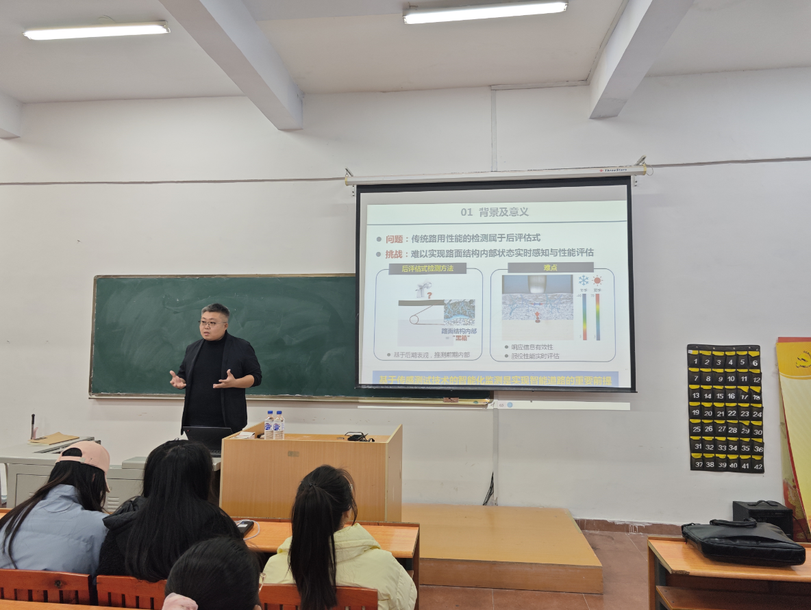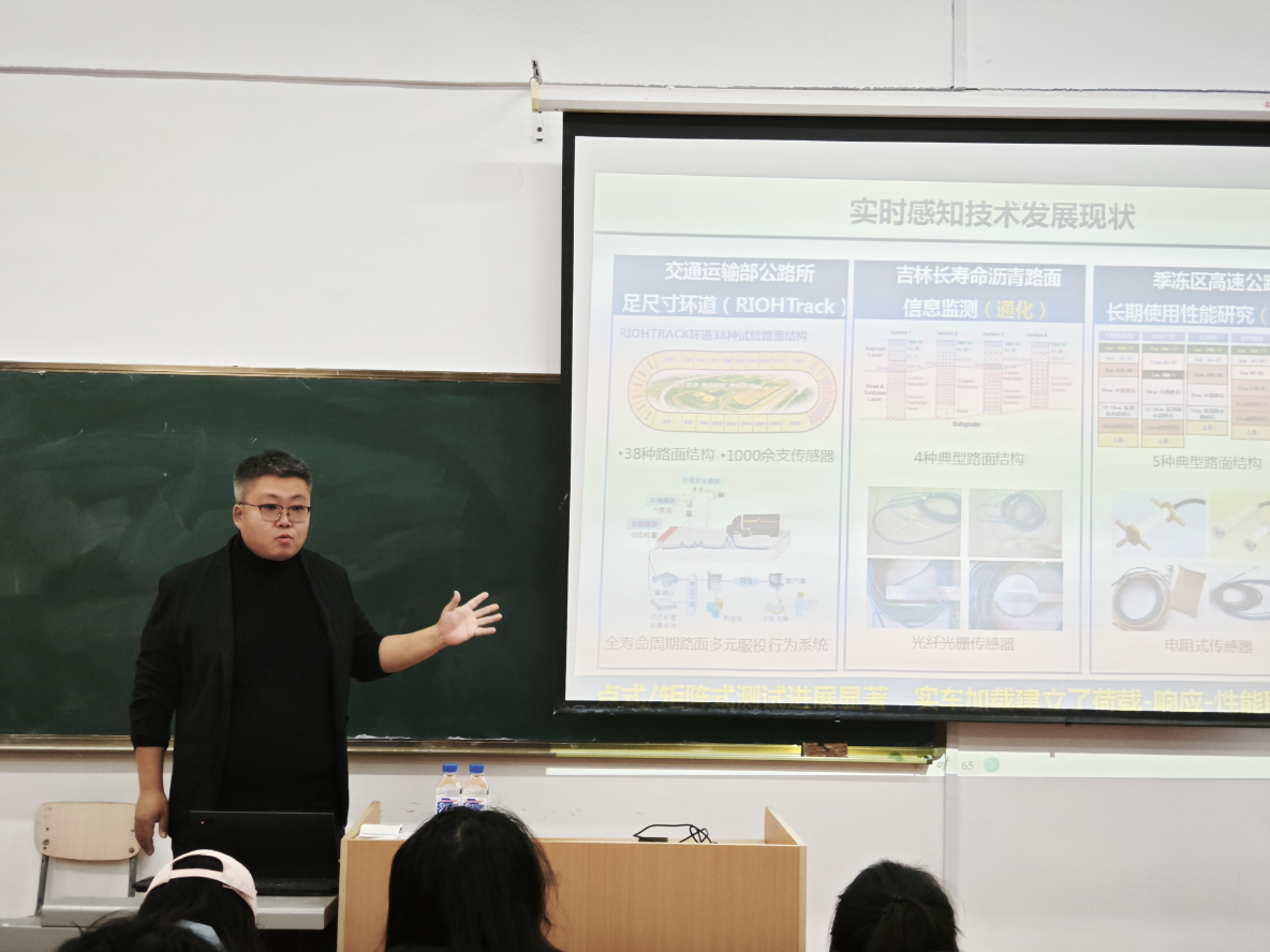 2024年11月8日,yl7703永利集团在五楼报告厅开展季冻区沥青路面服役性能分布式光纤监测技术与应用主题讲座,此次讲座由正高级工程师赵含主讲,yl7703永利集团22级全体学生参加。