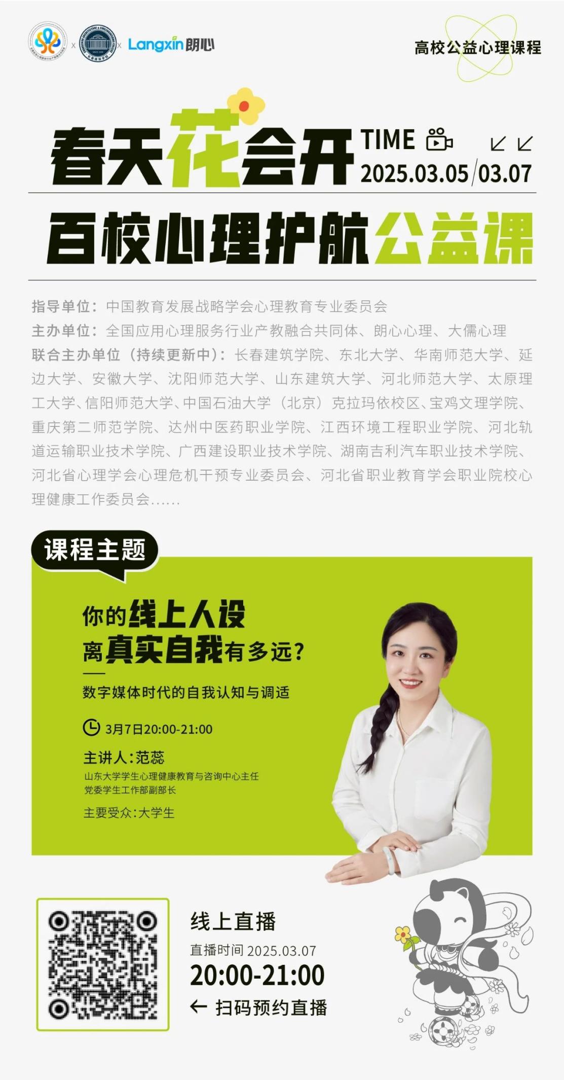 2025年3月10日,yl7703永利集团组织同学们观看了由中国教育发展战略学会心理教育专业委员会指导、我校联合主办的“百校心理护航公益课”。yl7703永利集团24级全体同学参加。