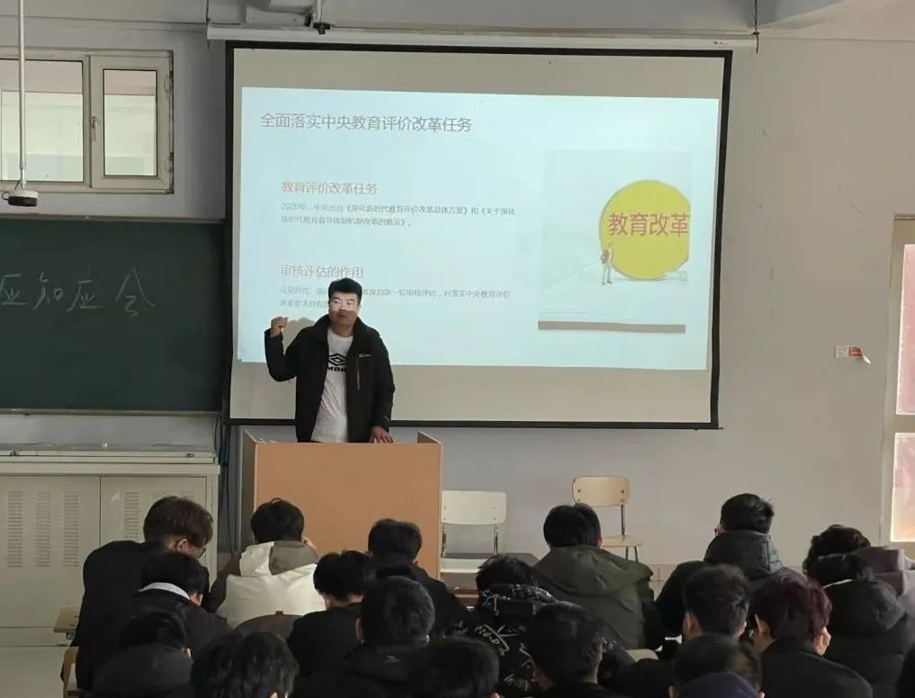 活动伊始,22级辅导员李俊达强调了此次“应知应会”知识学习的重要性,并对同学们进行了“应知应会”手册进行学习培训,明确指出“以评促建,以评促改,以评促管,以评促强”的评估要求。通过李俊达辅导员的引导,同学们不仅对“应知应会”知识有了更深入的理解,也对如何在学校审核评估工作中发挥作用有了更明确的认识。