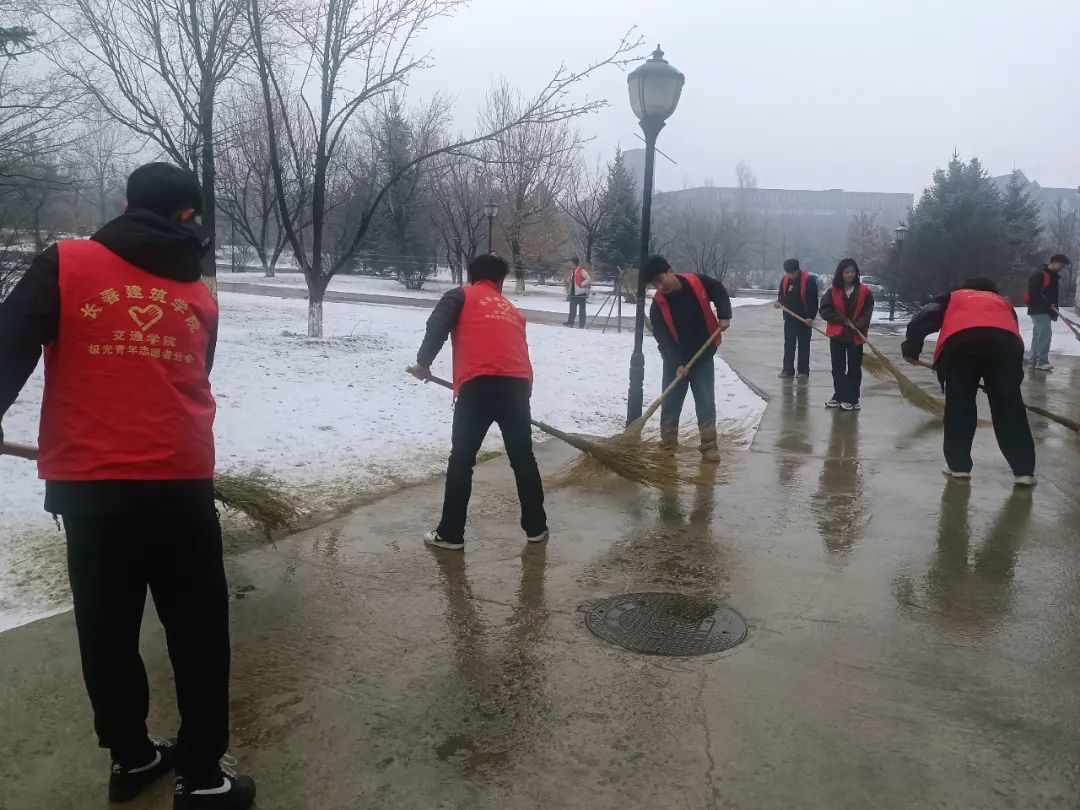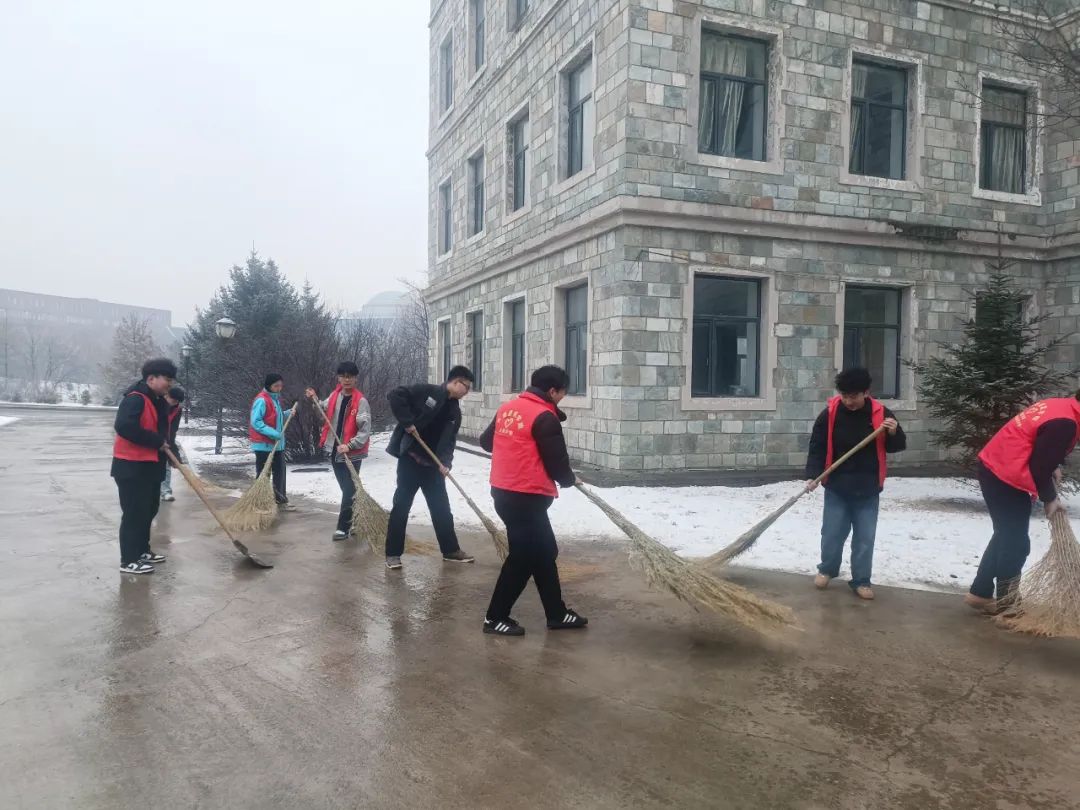 为保障校园道路畅通和师生的出行安全,消除雨夹雪天气为同学们带来的安全隐患,以及校园内的道路安全,防止路面结冰,加强学生劳动教育。