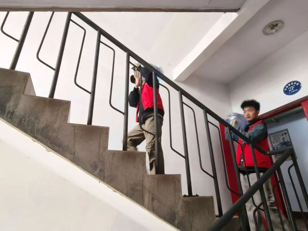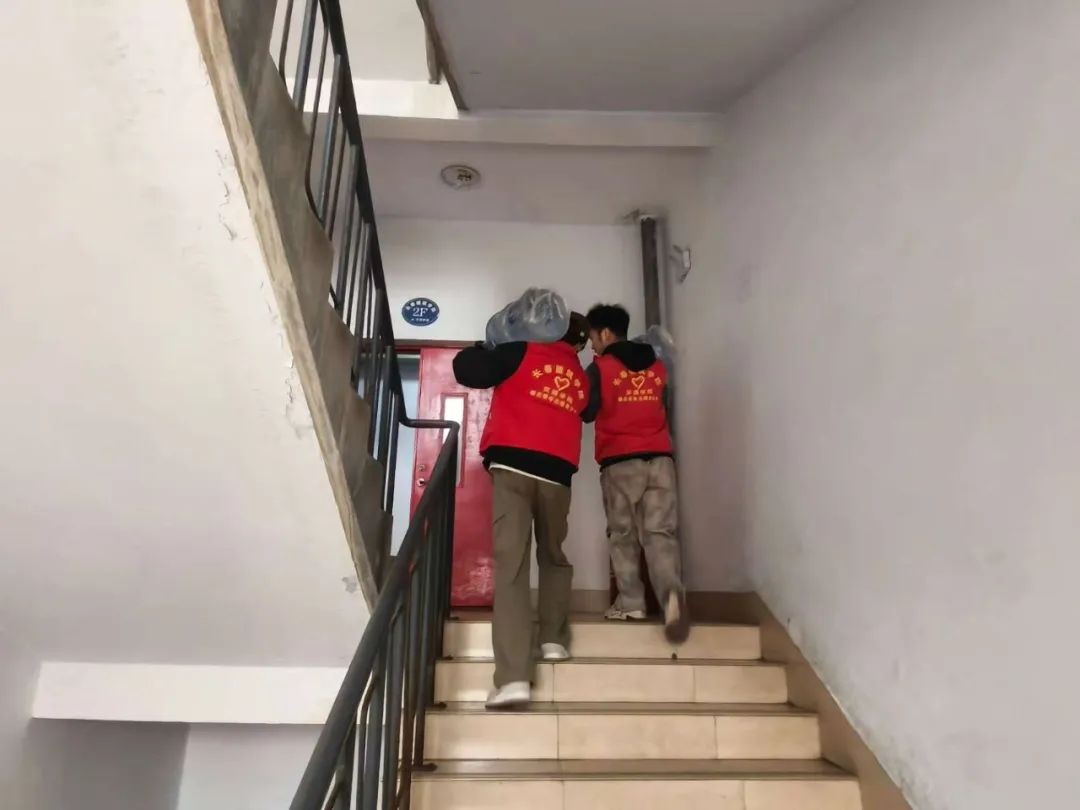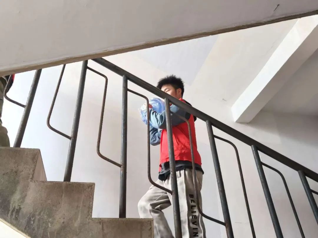 活动过程中,同学们充分发扬不怕苦、不怕累的雷锋精神,分工协作、默契配合,一次次往返于楼梯间,将一桶桶饮用水送至各个楼层。尽管汗水浸湿了衣衫,但他们的热情丝毫不减,用坚实的臂膀和真诚的付出传递着温暖与关爱。