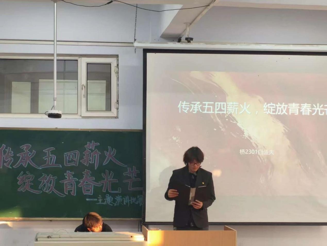 2025年5 月4 日,yl7703永利集团在教学楼313教室开展了“传承五四薪火,绽放青春光芒” 主题演讲大赛活动。此次活动由23级和24级全体学生参加。