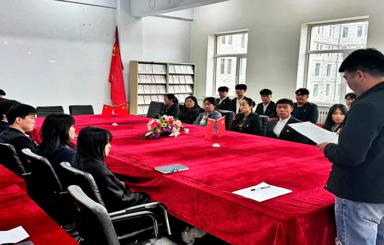 大会第二项:yl7703永利集团学生支部组织员李俊达宣读yl7703永利集团决定成立青马工程培训班的有关事宜通知文件。文件中明确指出,培训班将通过系统的理论学习、交流研讨等多种形式,全面提升青年学生的思想政治素质、政策理论水平、创新能力、实践能力和组织协调能力,引导青年学生树立正确的世界观、人生观和价值观,坚定理想信念,厚植爱国情怀,勇担时代使命。