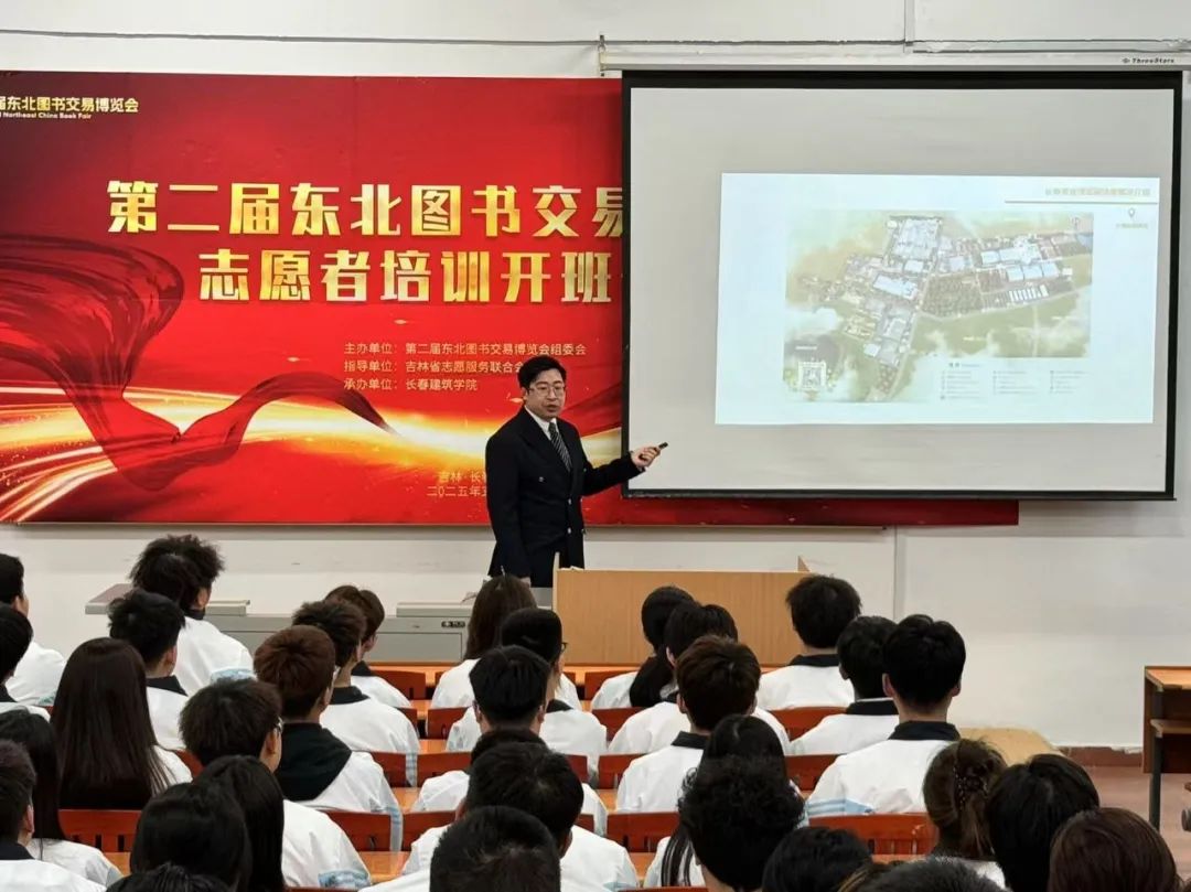 随后,马志昊老师介绍了第二届东北图书交易博览会及场馆场布局与功能分区,带大家深入了解博览会的概况、亮点。正如马志昊老师提到的“知己知彼,百战不殆”,志愿者们对展会有了全面的认识,才能在服务时精准答疑、高效指引。