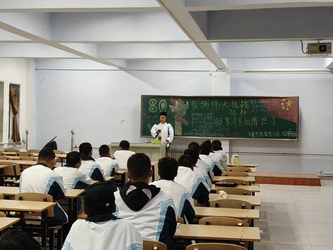 在团支书的带领下,各班级集中观看了《纪念抗日战争暨反法西斯战争胜利80周年》。影像将80多年前那段山河破碎却又众志成城的岁月清晰呈现在眼前。一幕幕画面既让同学们深刻感受到把一切献给祖国的赤诚,也让抗战精神变得生动具象。