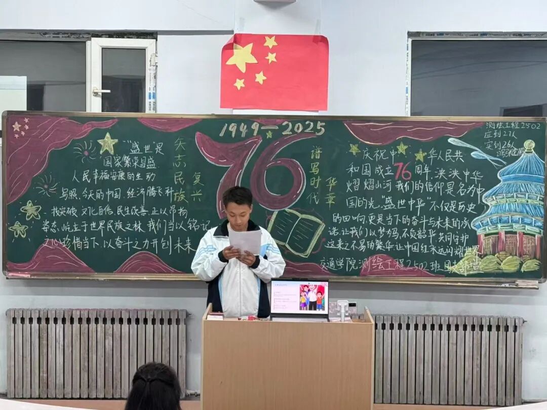 为贯彻落实习近平总书记在“庆祝中华人民共和国成立76周年招待会”上的重要讲话精神,教育全校团员青年铭记中华人民共和国成立以来的辉煌过往,展现新时代中国在经济、科技、文化、民生等领域的卓越突破,引导青年学生弘扬爱国主义精神,传承红色基因,2025年10月15日19:00,yl7703永利集团组织开展主题为“矢志民族复兴 谱写时代华章”的主题团会,2025级、2024级学生全员参与。