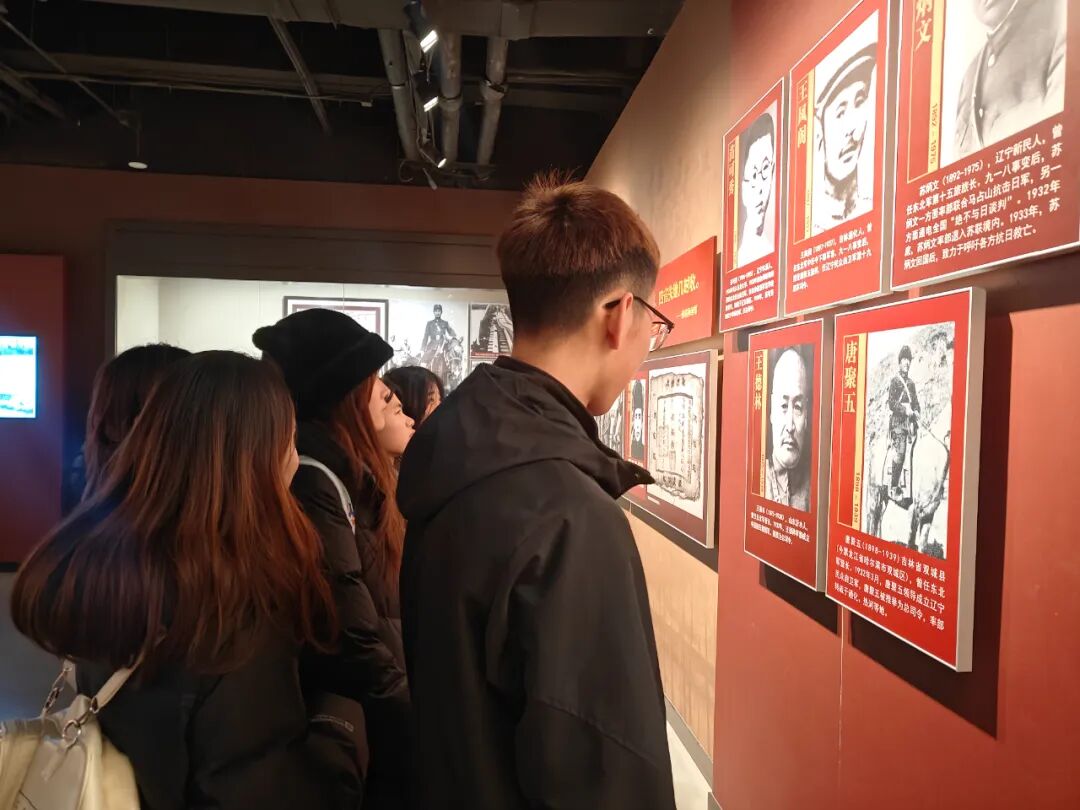 同学们驻足在“东北抗联英雄谱”展区前,指尖轻触展柜玻璃,凝视杨靖宇、赵一曼等烈士的遗物与事迹介绍;走到“八女投江”的场景复原区时,不少同学放缓脚步、低声感慨,展厅里的沉默,是对英烈最郑重的致敬。从“沦陷之痛”的沉重叙事,到“抗争之路”的热血篇章,从“民族觉醒”的星火微光,到“胜利之光”的希望黎明,一件件文物、一段段文字,让课本里的“红色精神”具象为可感的精神坐标,参观全程,大家沉浸其中、心潮翻涌,在这场沉浸式的红色洗礼中收获了深刻的精神共鸣。