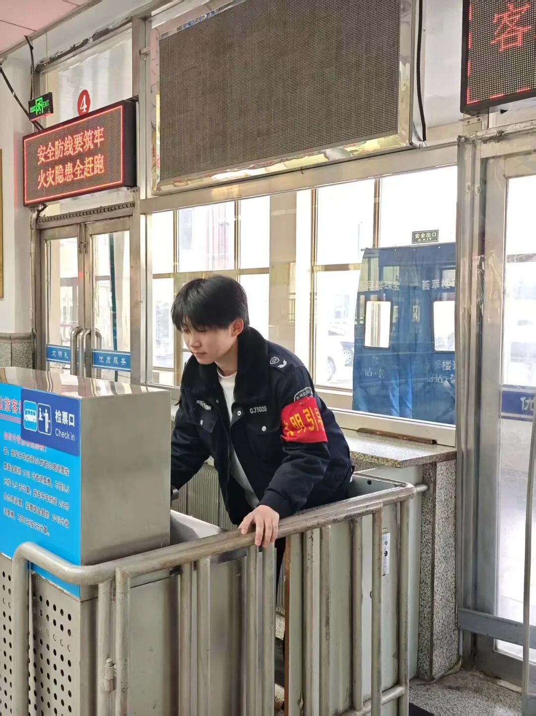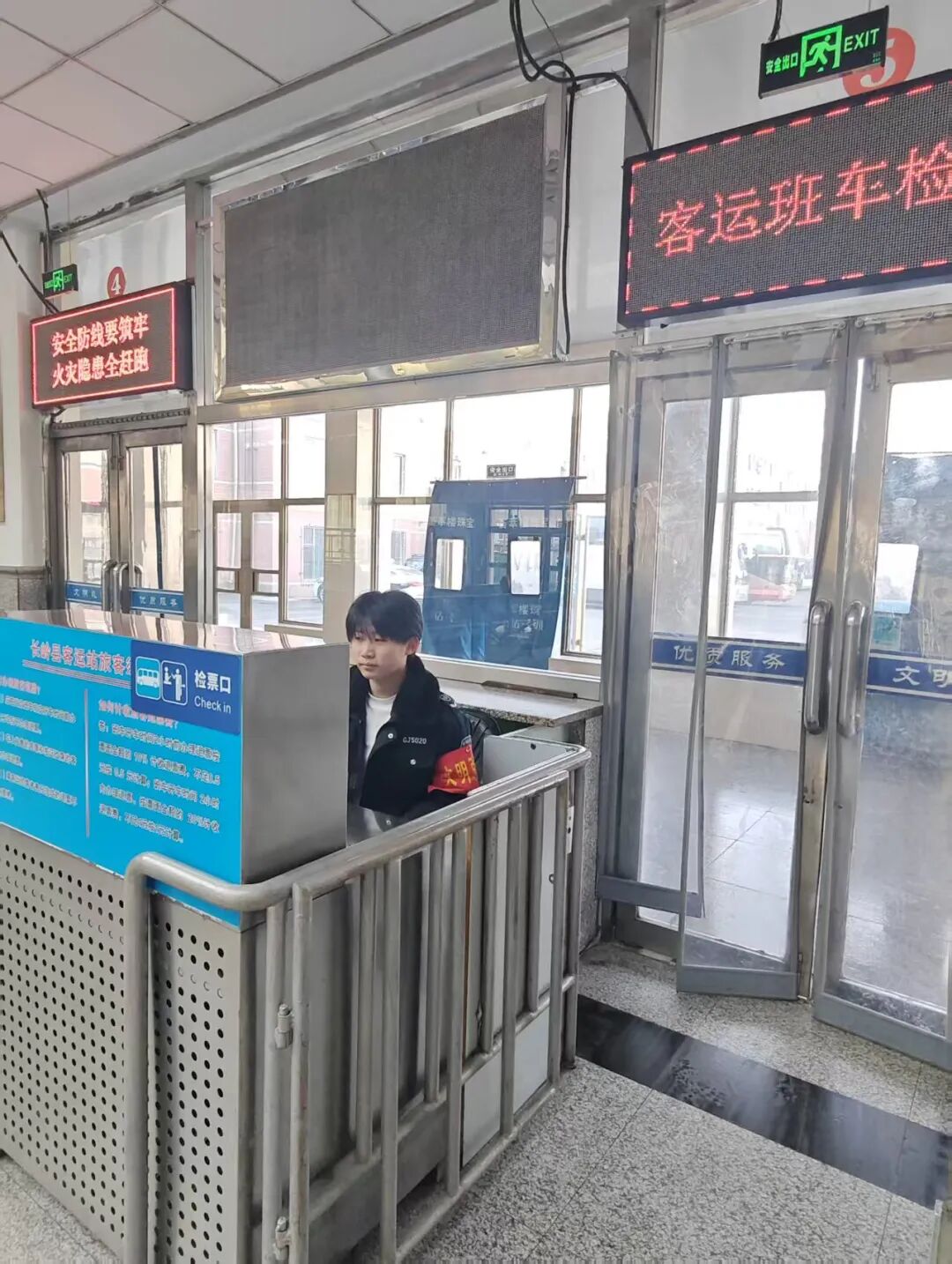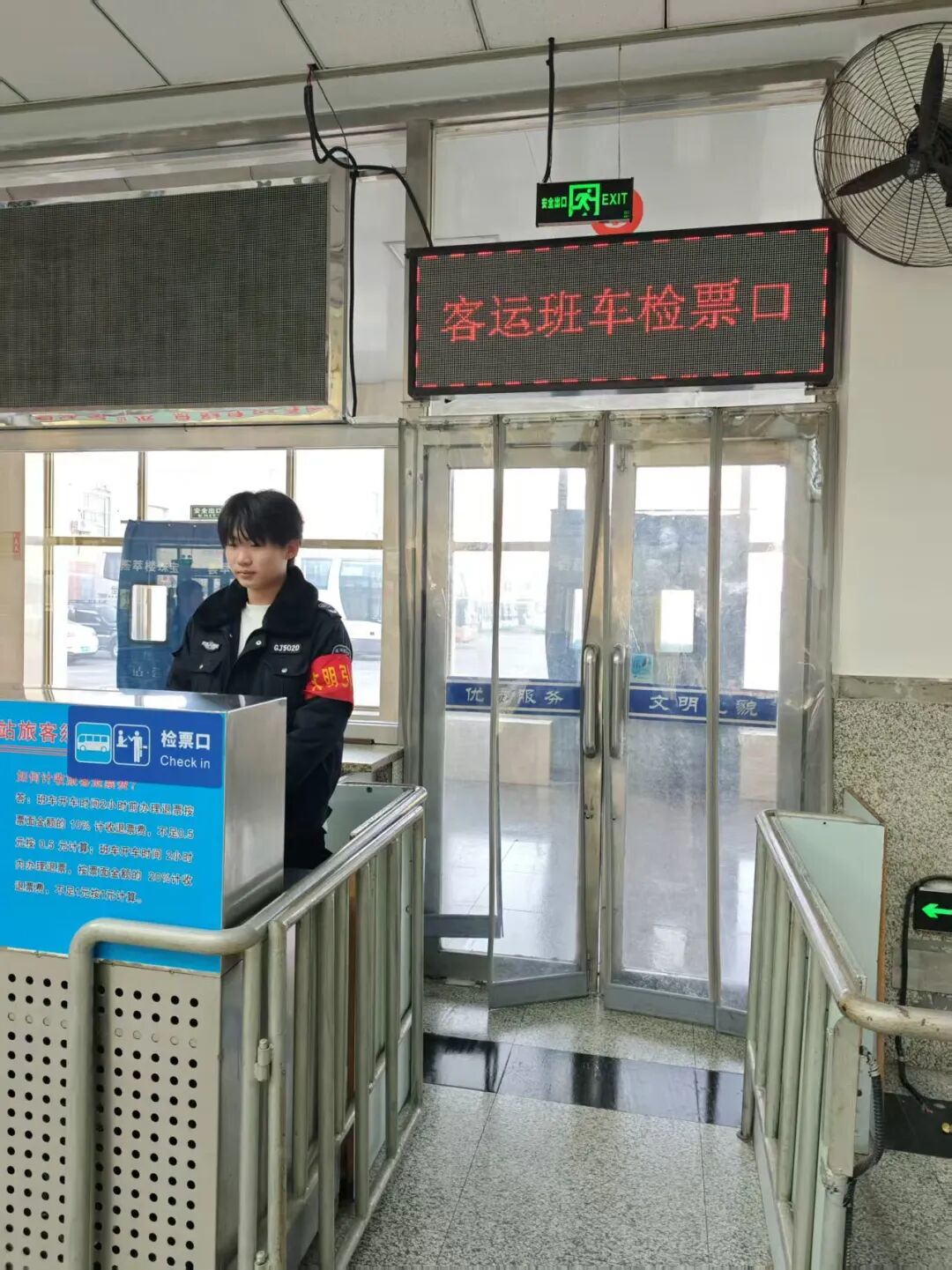 春运期间,客运站是归乡人潮的汇聚地,也是检验服务能力的“考场”。作为检票员,张新始终以严谨细致的态度对待每一项工作:核对车票信息时,他逐字逐句确认,确保零差错;引导旅客通行时,他耐心维持秩序,用微笑化解焦躁;面对乘客问询,他化身“活地图”,从班次时间到换乘路线,事无巨细地解答;客流高峰时段,他主动延长工作时间,用“我来帮您”的真诚服务分担压力。三周里,他累计服务旅客超千人次,用实际行动诠释了“奉献、友爱、互助、进步”的志愿精神,成为客运站里一道温暖的风景线。