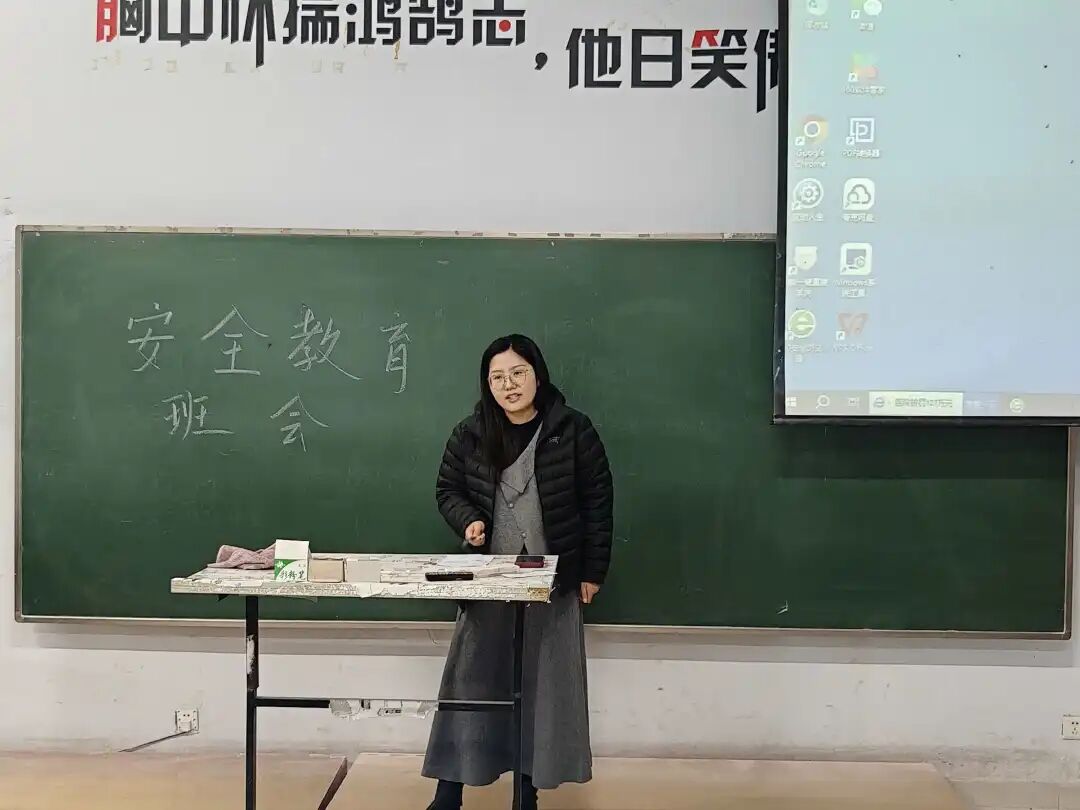 班会上,她首先结合校园真实案例,着重强调了违规电器使用的严重危害,提醒同学们严格遵守宿舍管理规定,坚决不使用大功率违规电器。同时,围绕防火防电安全知识展开系统讲解,普及了火灾预防、报警流程、初期火灾扑救及安全用电等基本常识,让同学们深刻认识到“安全无小事”,切实增强自我保护与防范意识。