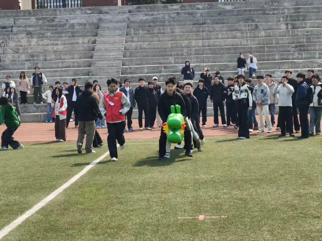 活动现场氛围热烈欢快,参赛队伍在工作人员引导下有序集结,认真聆听比赛规则、评分标准与安全注意事项,仔细学习各项目的动作要领和操作规范,力求在每个环节都能发挥出最佳水平。赛场上,同学们热情高涨、斗志昂扬,心往一处想、劲往一处使,将协作与拼搏的精神展现得淋漓尽致:旱地龙舟项目中,队员们步调一致、口号响亮,紧握把手默契发力,合力推动道具向终点冲刺;龟兔赛跑环节,大家同步配合道具、牢牢抓稳固定点,步伐协调统一,全程保持道具平稳前行,严格遵守赛事规则;篮球投框项目里,全体成员各司其职、紧密配合,协同托举道具稳步推进,始终保持球体平衡不落地,凭借高效的团队协作完成挑战。